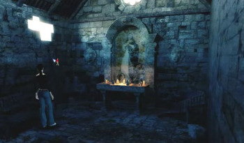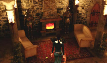 ![]() De achtergronden zien er bijzonder goed uit. Rijk gedetailleerd en "bijna echt". Aangenaam om in rond te wandelen en te bekijken. Er is prima gebruik gemaakt van schaduwen en belichting. Dat is met name goed te zien in de verschillen tussen het kasteel overdag en 's nachts. Overdag lijkt het gewoon een luxe hotel in een middeleeuwse omgeving. 's Nachts ademen dezelfde ruimtes een geheimzinnige en soms grimmige sfeer uit. Het is dan ook jammer dat de personen in het spel er zo karig vanaf komen. De gezichten zijn vlak getekend met weinig expressie, de bewegingen zijn houterig en eentonig.
