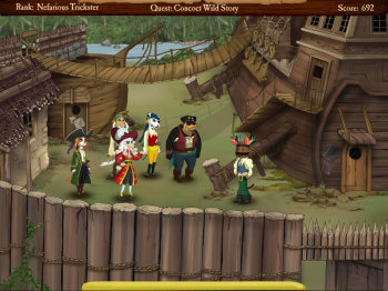 JOLLY ROVER![]() Uitgever: Brawsome / 2010 Ontwerper: Andrew Goulder, Brawsome Platform: PC, Mac. Systeemeisen: --- Windows XP SP2/Vista/7 - Pentium4 1.2 Ghz processor of sneller - 256 MB RAM - Standaard videkaart en geluidskaart - DirectX 9.0c - 160 MB opslagruimte. --- MAC OS 10.4/10.5/10.6, G4 800 MHz, 256 Mb RAM. Categorie: Piraten, humor, dierfiguren, cartoon 2D en 2.5 D beelden, 3de persoon, point & click. Walkthrough: klik hier voor Marjo's Nederlandstalige walkthrough. Beschrijving en review: Gaius James Rover is op weg met een lading rum voor de gouverneur van Groggy Island, als hij geënterd wordt door piraten. Zijn lading wordt in beslag genomen en hijzelf wordt in het ruim van het piratenschip gevangen gezet. Natuurlijk laat James het hier niet bij zitten. Met enige moeite en vindingrijkheid weet hij uit het ruim te ontsnappen, net voor het schip bij Groggy Island arriveert, maar veel helpt hem dat niet. Gouverneur DeSilver heeft de rum vooruit betaald en eist zijn geld terug. Er zit voor James niets anders op dan een baantje als piraat te zoeken om zijn schulden te voldoen. En dan valt James van het ene avontuur in het andere. Hij krijgt te maken met voodoo toverspreuken, geesten, kannibalen op een eiland vol vrouwtjeshonden die een hekel hebben aan mannetjes-piraten. En of dat niet genoeg is, kom hij ook nog de liefde van zijn leven tegen - de mooie Sara - die hij als een echte held uit de handen van een snode boef moet redden.