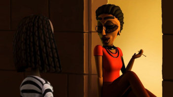 ![]() De grafische beelden in HD kwaliteit zijn zonder meer fantastisch noemen voor een indiegame en een hele verbetering ten opzichte van de oorspronkelijke versie van het spel, die Skygoblin als gratis retroversie aanbiedt. Ook op een groot 23 inch beeldscherm is het nergens pixelig. De achtergronden zijn met veel gevoel voor detail geschilderd en in prettige, bijna reële kleuren gehouden. De animaties verlopen vloeiend en verlevendigen de achtergronden. Of het nu stromend water met een dobber is, of een bootsman die aan zijn pijp lurkt, of knipperende stadslichten, alles ziet er professioneel perfect uit en draagt bij tot een natuurlijk sfeer. De tussenscènes zijn lang en zijn vloeiend als een tekenfilm. Bwana is een opmerkelijk en unieke hoofdrolspeler in een adventurespel. Zijn gezicht is geïnspireerd is op een Afrikaans masker, hij heeft een rastakapsel en praat als een stereotype inwoner van Jamaica. En dat terwijl het team van Skygoblin uit Zweden komt. Het is een zeer welkome en verfrissende afwisseling in een adventurespel! Maar ook de medebewoners met wie Bwana contact heeft, zijn allemaal met veel liefde vormgegeven en ze hebben een duidelijk eigen karakter dat op een grappige manier bij hun uiterlijk past.