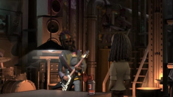 ![]() De achtergrondgeluiden zoals druppende regenpijpen en schuivende machines zijn waar nodig aanwezig en de geluidssterkte is in het optiemenu apart te regelen. De jazzy reggae muziek van Simon d'Souza is zeer aangenaam om naar te luisteren en onderstreept volmaakt de relaxte sfeer die Bwana uitstraalt. Het was droevig om te lezen dat d'Souza in mei 2014 is overleden en de uitgave van hoofdstuk 2 niet meer heeft meegemaakt. James Salisbury blijkt in deel 2 en 3 de taak waardig te hebben overgenomen en zorgt bij elke scène voor de juiste sfeer, van Afro-Reggae tot vettige 80-tiger jaren rock. Gedurende het hele spel is het de moeite waard om even te blijven hangen voor de muziek. Het stemacteren is een extra compliment waard. Elk karakter heeft een accent dat bij zijn stereotype past, van de relaxte Bwana tot de stoere zeebonk en de neurotische kok. Iets over de top, maar nooit irritant. De acteurs hebben er duidelijk plezier in.