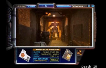![]() Grafisch gezien is het spel een enorme verbetering ten opzichte van het origineel. Dankzij de hogere resolutie is alles ook full screen aangenamer om te bekijken. De omgeving is sober en futuristisch strak, met voldoende details. Buiten, zoals op Mars, zien de struiken en dergelijke wel wat simpel uit. Daarentegen is een rollende pers die op je afkomt, wel weer akelig gedetailleerd. Alle acties worden gevolgd door FMV (full motion video), zodat je echt het gevoel hebt erbij te zijn. En dan niet alleen achtergrond animaties zoals vliegtuigen die je langs het raam ziet gaan. Elke actie die je onderneemt, wordt gevolgd door een filmpje. Voorwerpen die je opraapt en in je inventaris sleept, zie je net als laadjes die open gaan, consoles die omhoog klappen en videobeelden van de mensen met wie je communiceert. En als je op het toilet gaat zitten, verschijnt zelfs de krant voor je neus! Het helpt allemaal in realiteitsgevoel in deze science fiction.
