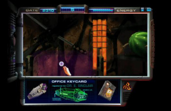 ![]() De spelbediening is even wennen in het begin. Die is namelijk niet verbeterd ten opzichte van de oude versie. Nog steeds gebruik je de pijltjestoetsen om door het hoofdmenu te scrollen en diverse toetsen op je toetsenbord om een inventaris en paneel te openen, of informatie over een voorwerp op te roepen. Ook het lopen, opzij draaien of deuren openen gaat met de pijltjestoetsen. Onhandig, als je tegelijk je muiscursor wilt gebruiken om het speelscherm op actieve punten te doorzoeken die je van dichtbij wilt bekijken of oprapen.