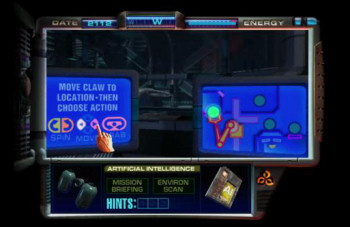 ![]() De puzzels zijn logisch en uitstekend in het sterke verhaal geïntegreerd. Geen kaarsje branden om een geheime deur te openen, maar wel een magneetpas stelen om ergens toegang te krijgen. Als je de verhaallijn volgt is het allemaal niet al te moeilijk en je krijgt zelfs de gelegenheid om de problemen automatisch op te lossen. Je kunt doodgaan in dit spel, maar het is te vermijden. Je wordt namelijk altijd door je AI gewaarschuwd als je gevaarlijk bezig bent. Stommiteiten zoals van een klip aflopen zijn dodelijk. Tijdpuzzels, zoals een tekort aan zuurstof, worden ook afgestraft met een overlijden. Gelukkig krijg je altijd de kans om het nog eens te proberen. Gewoon zien op hoeveel manieren je kunt doodgaan, is echter op zichzelf al leuk om uit te proberen. De actiepuzzels, zoals rijden in een mijnkar en de juiste tunnel kiezen, zijn leuk om te doen. Ook als het voor een ander puzzel nodig is meerdere malen de tunnel in te gaan. Los je alle problemen op, dan krijgt je punten. Neem je de moeite om overal alles te bekijken dan zijn er zelfs extra punten te verdienen.