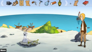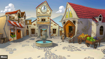 ![]() Wat de muziek betreft is vooral het eetcafé mooi gedaan. De twee muziekjes die je daar kunt horen, komen als bekend over en er lang naar luisteren is geen straf. De muziek die de barman wil horen is een uptempo popmuziekje de ander een populair stukje met pianoklanken. De muziek aan het begin van het spel is een soort popmuziek, zoals je die bij moderne, vrolijke kerstliedjes wel hoort. Op de achtergrond hoor je een zacht koortje. Bij het indianendorp hoor je muziek van trommelgeluiden, harmonieuze droge trommelklanken. Ook al niet saai om te horen. De achtergrondgeluiden zijn op een natuurlijke manier in het spel opgenomen. Je hoort krijsende meeuwen boven het geluid van de branding, vallende druppels in een grot, een spuitende fontein, voetstappen en een winkelbelletje. Als Joyfess een pijl moet schieten, hoor je het aantrekken van de boog en het ruisen van de pijl. De stemacteurs doen het goed. Geen óver-acteren, geen overdreven stemmetjes maar normaal overkomende stemmen, die niet irriteren. Het is overigens handig, als je het Engels redelijk beheerst, de ondertiteling uit te zetten. Soms zijn de ondertitelingen wat lang en bedekt het tekstblokje een te groot stukje van de tekeningen.