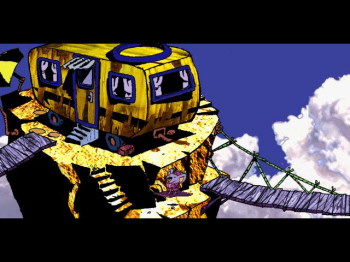 KOALA LUMPUR: Journey To The Edge![]() Uitgever: Brøderbund Software / 1997 Ontwerper: Colossal Pictures Platform: PC. Systeemeisen: --- Windows 3.1/95 - Videokaart met 256 kleuren - Geluidskaart soundblaster compatible - 260 MB opslagruimte. Categorie: Absurde humor, cartoon-universum redden, zoektocht, 2D cartoonbeelden, 3de persoon, point & click. Beschrijving: Koala Lumpur leeft in een gekke cartoonwereld en wil heel graag een echte, mystieke, zenmeester worden. Hij oefent hard, door allerlei mystieke en karmische onzin uit te kramen. Na per ongeluk een bezwering te hebben uitgesproken die een 'komische apocalyps' in het hele tekenfilmuniversum zou kunnen veroorzaken, gaat het mis. Het opperwezen van het universum, Ella Mental, beschuldigt Koala ervan een boekrol zoekgemaakt te hebben. Hij krijgt de opdracht de verloren boekrol, waarin tekenfilmprofetieën staan, te zoeken en het universum te redden. Koala roept de hulp in van zijn vriend, de hond Dr. Dingo Tu-Far, een met geweren zwaaiende, snel pratende wetenschapper. Ook zijn spirituele gids Fly moet helpen. Je speelt het spel als "Fly" (een vlieg, die ook je muisaanwijzer wordt) en stuurt de acties van Koala en Dingo. Om de verloren boekrol te vinden, moet Koala Dingo redden uit zijn eigen paniekkamer, vrede sluiten met de ex-vriendin van Dingo's psychotherapeut, naar het autokerkhof reizen dat het Land of Lost Things is, en ontsnappen uit een ruimtestation onder leiding van een sadistisch klein meisje. Genoeg te doen dus.