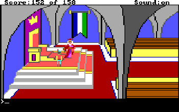 KING'S QUEST 1: Quest for the Crown![]() Uitgever: Sierra Online / 1984, 1990 - AGD Interactive / 2001, 2010. Ontwerper: Roberta Williams, Sierra Online Platform: PC, Mac. Systeemeisen: --- 1984-versie: IBM PC met MS-DOS. --- 1984-versie: MAC Apple II - 128 kb RAM. --- 1990 versie: Windows 3.1/95 - 486/25 MHz processor - 8 MB RAM - SVGA 640x480, 256 kleuren - Geluidskaart met DAC - 2x CD-ROM drive. --- 2010 versie: Windows ME/2000/XP/Vista/7 - - Pentium of hogere processor (233 MHz of meer vereist) - 32-bit SVGA Videokaart met minstens 2MB Video RAM - 16 MB RAM - DirectX 5 of hoger (DirectX 10 of hoger aanbevolen) - Ongeveer 139 MB beschikbare opslagruimte met 100 MB extra voor de save-game files - DirectX compatible digitale geluidskaart. --- 2010 versie: Mac OS X 10.4.11 Tiger/OS X 10.5 Leopard/OS X 10.6 Snow Leopard - nVidia 8xxx Series of AMD 3xxx of 4xxx Series Videokaart aanbevolen - Intel Core Processor CPU vereist - 512 MB RAM - Apple's X11 moet geïnstalleerd zijn - Ongeveer 308 MB beschikbare opslagruimte met 100 MB extra voor de save-game files - Compatible digitale geluidskaart. Categorie: Sprookjesachtige fantasie, schatzoektocht, getekende 2D en 2.5D beelden, tekstinvoer toetsenbord, muisbesturing, 3de persoon, point & click. Walkthrough: klik hier voor Marjo's Nederlandstalige walkthrough voor de 1984 versie. Walkthrough: klik hier voor Bert Jamins Nederlandstalige walkthrough voor de 1990 versie. Beschrijving: De oude, kinderloze koning van Daventry, geeft zijn magische spiegel aan een tovenaar, maar krijgt geen kind in ruil. Hij geeft zijn magisch schild aan een dwerg, maar krijgt geen medicijn voor zijn zieke vrouw. En als hij na haar overlijden hertrouwt, gaat zijn nieuwe gemalin er met de schatkist vandoor. De dappere ridder Graham gaat op pad om de drie gestolen schatten van het koninkrijk terug te halen. Als het hem lukt zal hij het koninkrijk erven. Tijdens zijn gevaarlijke tocht kan Graham punten verdienen, die niet allemaal nodig zijn om het spel te kunnen uitspelen. Bedenk ook dat hij op diverse manieren dood kan gaan!