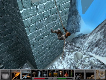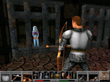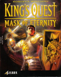 KING'S QUEST 8: Mask of Eternity![]() Uitgever: Sierra On-Line / 1998 Ontwerper: Roberta Williams, Sierra On-Line Platform: PC. Systeemeisen: --- Windows 95 - Processor: Pentium II 266 MHz - 64 MB RAM - 400 MB vrije opslagruimte - 4x CD-ROM drive - DirectX 16-bit geluidskaart - DirectX videokaart (bij voorkeur 3Dfx of D3D met accelerator). Categorie: Fantasie, fragmenten zoeken, met vechtactie en RPG-elementen, geïllustreerd realisme, realtime 3D, 3de persoon, point & click. Beschrijving en review: 'The Realm of Sun' is een magische wereld boven het koninkrijk Daventry. Krachtige wezens die bekend staan als archons wonen daar en bewaken het masker van de eeuwigheid, dat op zijn beurt voor het evenwicht tussen goed en kwaad in de wereld zorgt. Maar op een onheilspellende dag keert Lucreto, de leider van de Archons, het kwaad om en verbrijzelt het Masker in stukken. Een van die stukken valt naar beneden, precies onder de voeten van een eenvoudige boer en vechter genaamd Connor. Terwijl hij het fragment oppakt, ontdekt hij dat alle bewoners van het land in steen zijn veranderd. Hij moet nu zoeken naar de andere delen van het masker, het repareren en het opnemen tegen Lucreto in het 'Rijk van de Zon'.