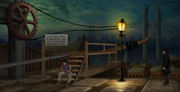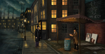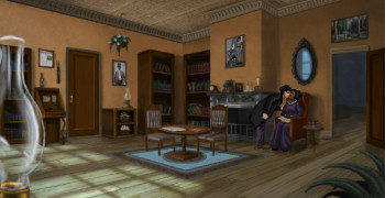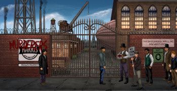 ![]() De grafische retrostijl achtergrondbeelden zijn duidelijk met liefde voor het tijdperk van de 19de eeuw vorm gegeven. Flakkerende olielampen in de straten en rokende schoorstenen op de daken verlevendigen de vele authentiek aandoende locaties die je kunt bezoeken. Je hebt toegang tot de rijke en de arme delen van de stad en in elke zaak worden specifieke locaties toegevoegd zoals een kerkhof en een brug in aanbouw. Alles is zeer gedetailleerd. Daarbij zijn de sociaal economische verschillen overtuigend echt in beeld gebracht, met de juiste kleding voor de arbeider, de dame die bezoek ontvangt in een rijk gedecoreerde salon, maar ook in de houdingen die de karakters aannemen. Bewegingen van karakters zijn soepel natuurlijk en het is leuk te zien dat Miles echt deuren openmaakt en erdoorheen wandelt. De timing van de mondbewegingen zijn uitmuntend, een enkele keer wordt er nog gepraat als de mondjes dicht zijn. Ook past de mimiek bij de klanken als aa en oo. Het stemacteren is professioneel en overtuigend echt. In combinatie met de uitstekend geschreven dialogen brengt dit leven in het spel. Ook de geluidseffecten zijn prima in orde, je hoort of Miles op hout of tapijt loopt en buiten hoor je het verkeer en de vogels. De orkestrale muziek die dit alles passend begeleidt, draagt prima bij aan de sfeer van het tijdperk en het mysterieuze van de onderzochte zaken.