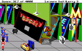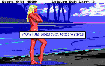 LEISURE SUIT LARRY 3: Passionate Patti in Pursuit of the Pulsating Pectorals![]() Uitgever: Sierra On-Line / 1989 Ontwerper: Sierra On-Line Platform: PC. Systeemeisen: --- MS-DOS 2.0 - Processor: Intel 8088/8086 - 512 KB RAM - CGA, EGA, VGA videokaart met 16 kleuren - Adlib, Soundblaster geluidskaart - 3.5"floppy disk drive. Categorie: Sexueel getinte humor, tropisch eiland, 2D en 2.5D getekend pixelrealisme, 2 speelbare karakters, 3de persoon, tekstinvoer, muis-en toetsenbord. Beschrijving: Larry Laffer heeft eindelijk in Kalalau de vrouw van zijn dromen gevonden en leeft zeer gelukkig samen met haar samen op het prachtige tropische eiland... totdat hij door zijn vrouw het huis uit wordt gezet. Zijn baas, die toevallig zijn (nu ex-)schoonvader is, ontslaat hem. Larry is helemaal alleen, zonder vrouw, zonder baan, op een eiland dat al lang niet meer een 'tropisch paradijs' is en hij wordt uitgebuit door entertainers, advocaten en dergelijke. Maar wanhoop nooit! Gekleed in zijn onweerstaanbare vrijetijdspak staat Larry op het punt de wereld (of in ieder geval de vrouwelijke bevolking) opnieuw te veroveren. Hij trekt de stomende jungle in, die wordt geregeerd door kannibaalvrouwen uit de Amazone. Als Patti volg je Larry's spoor diep de overwoekerde jungle in. Vind je geliefde en red hem uit een leven van seksslavernij.