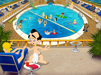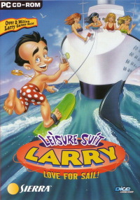 LEISURE SUIT LARRY 7: Love for Sail![]() Uitgever: Sierra On-Line / 1996 Ontwerper: Sierra On-Line Platform: DOS, PC, Mac, Linux Systeemeisen: --- MS-DOS 4.0/6.22 of Windows 3.1/95 - Processor: Intel i486 DX2 - 12 MB RAM - 2X CD-ROM drive - Super VGA videokaart met 640x480 resolutie en 256 kleuren - Soundblaster geluidskaart. --- MAC Motorola 68040 - System 7.1 - 8 MB RAM - 2x CD-ROM drive - 25 MB opslagruimte - Quicktime 2.5. Categorie: Sexueel getinte humor, cruiseschip, 2D en 2.5D cartoonbeelden, arcade minigames, 3de persoon, point & click. Beschrijving: Larry krijgt onverwacht een kaartje voor een reisje met een cruiseschip. Bij aankomst van de passagiers wordt een mega-wedstrijd aangekondigd. Deze wedstrijd omvat verschillende soorten sport en activiteiten, van bowlen tot vrijen. De winnaar mag scorenmet de sexy Captain Thigh. Natuurlijk kan Larry deze wedstrijd op geen enkele manier eerlijk winnen, dus moet hij zijn hersens gebruiken om de lastige puzzels van het spel op te lossen en zich zo een weg te banen naar het bed van de kapitein.
