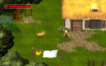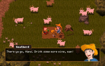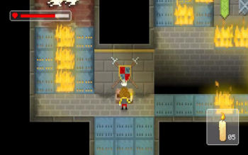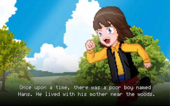 ![]() Grafisch is het spel een mix tussen pixelige beelden, die je net als in een klassieke RPG van bovenaf ziet en Japans uitziende animaties van karakters met typische grote ogen en verbaasde open monden. Hoewel het verhaal doet vermoeden dat het om een spel voor kinderen gaat, blijken de beelden toch niet geschikt te zijn voor de jongsten onder ons. Veel bloed en horrorgezichten. De statische achtergronden zijn wel in vrolijke kleuren, zolang Hans nog niet in de nachtmerrie zit. Daarna zijn het voornamelijk roodbruine tinten, verlicht door een gelige vlam. Het ziet er goed uit. Ook is alles ruim voldoende gedetailleerd. Hans loopt en beweegt soepel, zoals je van een paar pixels verwacht.