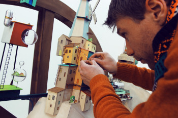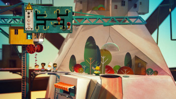 ![]() Grafisch gezien is het een heel bijzonder spel. De stad is namelijk geheel met de hand vervaardigd van papier, karton en touw. Een gigantisch karwei tot in de kleinste details van laddertjes, sloten, radertjes en huisjes doorgevoerd. Dit alles werd gefilmd, waarna later Lume en de andere karakters in het spel, getekend en geanimeerd in een eigen karakteristieke stijl toegevoegd werden. De achtergrondmuziek is aangenaam en past bij de sfeer van het spel en de puzzels. Hij is wel enigszins repetatief, maar omdat de puzzels niet al te moeilijk zijn, blijf je niet lang genoeg op één plek om er echt last van te hebben.
