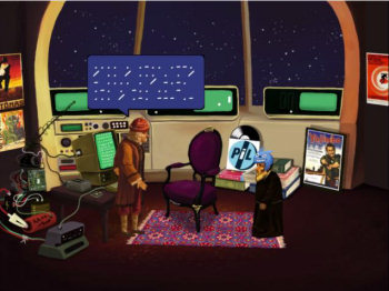 ![]() Er zijn geeen gesproken stemmen in dit spel. Alle dialogen worden in tekstballonnen met duidelijk leesbare tekst weergegeven. De dialogen zijn humoristisch. Soms alleen voor insiders (Iemand die tegen Titiaan zegt dat hij beter Van Eyck had kunnen nemen). Ook werken ze licht bevreemdend, zoals het hoort. Je blijft je afvragen hoe dat nou precies zit met die vreemde figuren. Soms krijg je subtiele hints voor de puzzels, al is dat niet echt nodig. De achtergrondmuziek is net zo surreëel als de beelden. Klanken die perfect passen bij de omgeving.