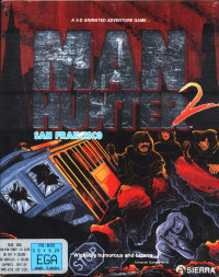 MANHUNTER 2: San Francisco![]() Uitgever: Sierra On-Line / 1989 Ontwerper: Evryware Platform: PC Systeemeisen: --- MS-DOS 1.0+ - Processor: 8088/8086 - 256 KB RAM - 5.25" of 3.5" disk drive - EGA, CGA, MCGA, VGA videokaart - PC Speaker geluidskaart. Categorie: Science fiction, thriller, samenzwering, met arcade, 2D getekend beeld, slideshow, 1ste persoon, toetsenbordbesturing. Walkthrough: klik hier voor Marjo's Nederlandstalige walkthrough. Beschrijving: Nadat je New York hebt bevrijd van de Orb-invasie in Manhunter: New York, achtervolg je Phil Cook, de massamoordenaar, naar de westkust. De achtervolging eindigt in San Francisco, waar je ruimteschip neerstort. Omdat Phil denkt dat je dood bent, neem je de identiteit aan van een andere manhunter die omkwam bij de crash. Zo kun je onopgemerkt blijven en je dagelijkse onderzoeksopdrachten van de Orb-alliantie voortzetten. Tegelijk blijf je op zoek naar Phil én werk je voor het lokale menselijke verzet. Al snel ontdek je dat er verschillende facties in de stad zijn die zich verzetten tegen de heerschappij van de Orbs. Naast de menselijke Drakenclan zijn er ook ratachtige mutanten. Beide streven ernaar en slagen erin de Viewer van de Orbs te bemachtigen. Omdat de Orbs menselijke slaven gebruiken om tunnels onder San Francisco te graven, hebben ze de Viewer nodig om hun slaven te volgen, aangezien hun volgapparaten ondergronds niet werken. De gemuteerde rattensoort wil de Orbs omkopen om een geneesmiddel te krijgen waarmee ze weer mens kunnen worden, terwijl de Drakenclan de Viewer wil gebruiken om de slaven te volgen en ze te bevrijden. De ware bedoelingen van de Orbs zijn de volledige vernietiging van de mensheid!