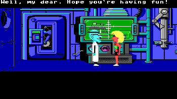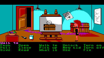 MANIAC MANSION![]() Uitgever: LucasArts / 1988 (PC-DOS versie) Ontwerper: LucasArts Platform: PC. Systeemeisen: --- DOS IBM PC en compatibles - Processor: 10 MHz 80286 en hoger - 640K geheugen vereist - Videokaart: 16-kleuren EGA - Geluidskaart: SoundBlaster en compatible - Harde schijf. Categorie: Mysterie, cartoon, gestoorde wetenschapper, ontvoering, getekende 2D beelden, meerdere karakters en eindes, 3de persoon, point & click. Extra info: In 1987 kwam het spel uit voor de Commodore-64. De PC-DOS versie volgde in 1988. In 2004 werd het spel door fans als freeware uitgebracht, onder de naam Maniac Mansion DeLuxe. Het van oorsprong DOS-spel was geschikt gemaakt voor Windows en had 256-kleuren in plaats van slechts 16 kleuren. Ook de SCUMM-interface werd verbeterd en het spel werd gemaakt in AGS (Adventure Game Studio) zodat er geluidseffecten en achtergrondmuziek kon worden toegevoegd. Hoewel het spel helemaal vanaf de grond opnieuw opgebouwd werd, hebben de fans het verhaal, de spelbediening en de vele grappen uit het origineel intact gelaten. Wel werden enkele bugsverholpen en één bepaalde puzzel aangepast. Walkthrough: klik hier voor Marjo's Nederlandstalige walkthrough van de "DeLuxe" versie. Beschrijving: Er wonen rare mensen in Maniac Mansion: Dr. Fred, een gepensioneerdearts die een gestoorde wetenschapper werd; Verpleegster Edna, een voormalig verpleegster met hobby's die een zeeman zouden doen blozen; Gekke Ed, een tienercommando met een rare hamstertic; en dan is er Dooie Neef Ted, en de tentakel, en nog iemand - of zoiets - anders. Het landhuis is altijd al een griezelig oud huis aan de rand van de stad geweest. Er gaan nog steeds geruchten dat er vreemde experimenten gaande zijn en dat er vreemde wezens leven. Er is zelfs een verhaal dat bijna 20 jaar geleden ooit een meteoriet in de buurt van het huis is neergestort. In ieder geval is er onlangs een aardig meisje genaamd Sandy, verdwenen van de plaatselijke middelbare school en zweert haar vriend Dave dat hij zag dat Dr. Fred haar ontvoerde. Dave weet dat hij het allemaal niet alleen kan, hij heeft de hulp van twee andere studenten nodig als hij enige hoop heeft het landhuis te infiltreren en Sandy te redden. Dr. Fred staat op het punt Sandy's hersenen als donatie te ontvangen! In het begin van het spel kan de speler drie studenten kiezen met wie gespeeld wordt, uit een selctie van 7. Dave is verplicht, de twee andere zijn naar keuze. Ze hebben elk hun eigen kwaliteiten en de problemen zullen dan ook op een andere manier opgelost kunnen worden.