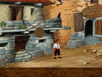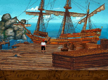 MISSING ON LOST ISLAND![]() Uitgever: Bohemia Interactive / 2000, 2002 Ontwerper: Mayhem Studios, Riki Computer Games Platform: PC. Systeemeisen: --- Windows 95/98/ME/XP/2000 - Processor: Pentium 100 MHz, 64 MB RAM - DirectX compatible videokaart en geluidskaart - CD-rom drive. Extra info: Het spel werd in eerste instantie in 2000 uitgegeven in Tjechië en later in 2002 in Duitsland met Engelse ondertiteling en dialogen. Categorie: Science fantasie, piraten, tijdreis, zoektocht, 2D en 2.5 D getekend realisme, 3de persoon, point & click. Beschrijving: Als Tim en Diana op een avond naar huis lopen, ontmoeten een paar mannen gekleed als 17e-eeuwse piraten die iets op een kar laden. Verstoord door het paar schiet een man met een houten been Diana neer met een laserpistool en ze verdwijnt. In het daaropvolgende gevecht wordt Tim ook neergeschoten en verdwijnt ook. Hij materialiseert weer naakt in een diepe krater, ergens in een andere tijdsperiode. Voordat hij op weg gaat om Diana te vinden en terug te keren naar zijn eigen tijd en plaats, zal hij wat kleding moeten vinden &@233;n een manier om uit die put te komen.