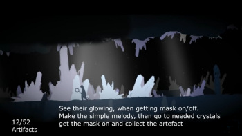 ![]() Schakel tussen de "echte" en de geestenwereld, verzamel symbolen en voorwerpen en los raadsels op. De puzzels zijn goed geïntegreerd in het verhaal, of het nu gaat om het ongeschonden passeren van een vogel of het onthouden van een bepaald patroon. Voor een deel bestaan ze uit het ontdekken van wat nu precies de bedoeling is en soms zijn ze optioneel. Sommige geesten zijn je welgezind en laten dit merken. Gebruik hun kennis en hulp en ontdek zo de mysteries van de Fins-Oegrische legendes. De handgetekende grafische beelden zijn sfeervol en geïnspireerd door oude grottekeningen die zijn gevonden. Ze lijken dan ook ietwat primitief. Sommige achtergronden zien eruit als vegen waterverf met witte inktlijnen voor de noodzakelijke details van de symbolen. Alles is in vage grijze, zachtgroene, roze of zachtgele tinten, die prima passen bij het mystieke verhaal.