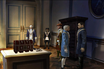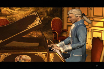 ![]() De grafische beelden in het spel zijn heel mooi, hoewel veel van het spel zich in het halfdonker afspeelt. Ze geschilderde achtergronden zijn fotografisch echt. De personen die er rondlopen zijn gedetaileerd weergegeven, maar omdat ze "scherper" zijn, passen ze minder in het decor. Jammer is ook dat de personen altijd dezelfde bewegingen maken en een vrijwel statische gezichtsuitdrukking hebben. Als Mozart piano speelt, kun je beter niet op zijn handen letten en gewoon genieten van de muziek. Daar valt namelijk weinig op aan te merken, het is gewoon muziek van...Mozart. Leuk is dat je extra stukken kunt horen, die verder niets met het spel te maken hebben. Klik op een piano of clavecimbel die overal rondstaan en Mozart speelt (compleet met orkest) een deuntje uit eigen werk. Het stemacteren is uitstekend gedaan. Het klinkt allememaal heel natuurlijk en bij de persoon passend.