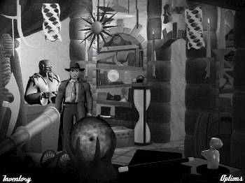 NICK BOUNTY 2: The Goat in Grey Fedora![]() Uitgever: Pinhead Games / 2005 Ontwerper: Mark Darin, Ron Watt en Jason Ellis Platform: PC. Systeemeisen: --- Windows Categorie: Noir-detective, humor, zoektocht verdwenen beeld, 2D en 2.5D zwartwit getekend realisme, 3de persoon, point & click. Walkthrough: klik hier voor Marjo's Nederlandstalige walkthrough. Beschrijving en review: In deel 2 van de Nick Bounty serie, gaat Nick op zoek naar een keramische geit. Niet dat hij het zoeken naar een beeldje nou zo'n spannende opdracht vindt, maar als femme fataleKitty, die de nicht van een onlangs overleden advokaat is, zoiets vraagt, kun je natuurlijk niet weigeren. Al heel snel komt Nick erachter dat hij niet de enige is die het beeldje wil vinden. Ook heeft het beeldje beslist meer waarde dan hij aanvankelijk denkt. In tegenstelling tot deel in in de serie, zijn de grafische beelden nu in 2.5D. Dat wil dus zeggen dat er 3D karakters rondlopen voor een 2D getekende achtergrond. Het geeft het geheel een levendiger indruk. De zwart/wit uitvoering is als een eerbetoon gemaakt in de stijl van de oude Humphrey Bogart films, compleet met de onderkoelde humor uit die films, al zijn ook duidelijk de humor-invloeden te merken van LucasArts spellen. De stemmen, met name die van Nick, passen perfect bij de stijl van het spel. In een aangenaam uurtje of twee ben je door deze mini-adventure heen.