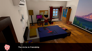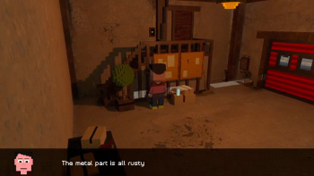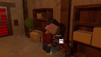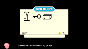 ![]() De zeer eenvoudige puzzels zijn leuk op natuurlijke wijze in het verhaal geïntegreerd. Als het te donker is om iets te zien, zoek je uiteraard het lichtknopje. Het kan aan, maar ook weer uit. En natuurlijk is de poort afgesloten met een codeslot, waarvan de code gelukkig vlakbij ligt.En natuurlijk is de poort afgesloten met een codeslot, waarvan de code gelukkig vlakbij ligt. Scott zegt zelf dat hij eerst de band van zijn fiets moet repareren eer hij weg kan. De fietspomp kan hij met zijn legohandjes niet oprapen, in een flits zit het ding in je grote en overzichtelijke inventaris. In het begin zijn de puzzels zeer eenvoudig, om je aan het principe te laten wennen. Is Scott eenmaal in Teni's kamer, dan wordt het wat ingewikkelder, maar niet onoverkomelijk.
