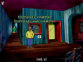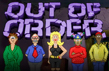 OUT OF ORDER![]() Uitgever: Hungry Software / 2003 Ontwerper: Tim Furnish, Hungry Software Platform: PC, Mac, Linux. Systeemeisen: --- -- Categorie: Science fiction, humor, ontvoering, paralelle wereld, 2D en 2.5 D cartoonbeelden, 3de persoon, point & click. Walkthrough: klik hier voor Marjo's Nederlandstalige walkthrough. Beschrijving en review: Hurford Schlitzing, een naam in de traditie van 'Guybrush' uit Monkey Island, ontwaakt tijdens een onweerstorm. Hij ontdekt dat hijzelf en zijn hele slaapkamer zijn getransporteerd naar een plaats die The Town heet, ergens in een parallelle wereld. Slechts gekleed in badjas en teddybeerslippers moet Hurford uitzoeken waar hij is, hoe hij daar kwam en wie hier verantwoordelijk voor is. Dat is nog niet zo eenvoudig, want de personen die hij ontmoet zijn narrige aliens, die gehersenspoeld zijn door hypnotische muziek. Er zit niets anders op dan een computer te hacken en met het 'Random Access Memory' te praten en het dictatoriale regime een halt toe te roepen. De puzzels in dit komische avontuur zijn goed in het spel geïntegreerd. De dialogen scherp en humoristisch en de grafische beelden in cartoonachtige vrolijke kleuren, met veel aandacht voor details.