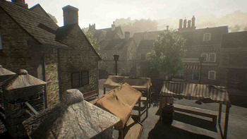 ![]() Beeld en geluid zijn prima verzorgd. Er hangt een zonnige beetje mistige sfeer in het stadje. Een riviertje vindt ruisend zijn weg langs de stadsrand. Veel beweegt er niet maar je ziet bomen, struiken en gras wuiven in de wind, die af en toe hoorbaar aanwakkert. Dan dwarrelen er ook wat blaadjes van de bomen en werpt het zonlicht mooie schaduwen op de muren van de huizen. Er is veel detail maar niet alles is in dezelfde mate uitgewerkt. Sommige voorwerpen, die je kunt vergroten en van alle kanten bekijken, zijn heel realistisch met een mooie textuur. Er zijn wel enkele aanmerkingen te maken. Er zijn wat slordigheden zoals douches zonder douchekraan, open haarden zonder rookkanaal naar buiten, ruimten met verlichting maar geen lichtknop. Er is veel gebruik gemaakt van kopiëren en plakken. In sommige kamers kom je wel vijf keer hetzelfde boek tegen. Of je vindt kleefvelletjes enkele meters uit elkaar met identiek gekrabbel erop. De precies gelijke elektrische voorzieningen buiten de huizen zijn ronduit lelijk en onnodig. En de plattegrond van het burgemeestershuis is niet erg precies.