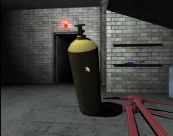 ![]() Het spel ademt meteen vanaf het begin een griezelige sfeer uit. Een sinistere omgeving, vreemde geluiden, falende verlichting en een zaklamp waarvoor je batterijen moet zoeken. De schaduwen en de stoom die hier en daar uit roosters komt, verhogen nog de illusie van gevaar. Het briefje van een verdwenen arbeider en de bloedsporen die je hier en daar ziet, dragen ook niet bij tot een gevoel van veiligheid, temeer daar er in dit spel niet geschoten wordt en je weerloos bent tegen de monsters. Je enige wapen is je verstand. Het is heel leuk om te merken dat je alle voorwerpen die overal rondliggen, daadwerkelijk kunt vastpakken en verplaatsen. Of dit nu een blikje, een boek, een stoel, een emmer of zelfs een heel wandrek is. Je kunt het beetpakken en eraan rammelen, schuiven, trekken en ergens anders neergooien. Lades en deuren zul je dus echt moeten beetpakken en eraan trekken of duwen. Ze gaan niet met een simpele muisklik open, zoals in andere adventures. Verder heb je wel zoals gebruikelijk een inventaris, waarin je voorwerpen kunt opbergen die je later nodig hebt. Hierin zit eveneens een metertje dat de stand van de batterijen in de zaklamp aangeeft.