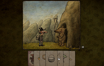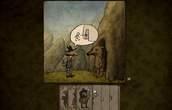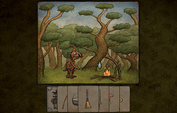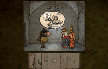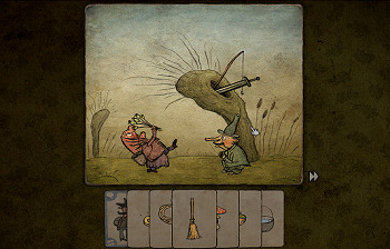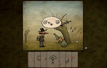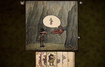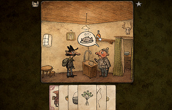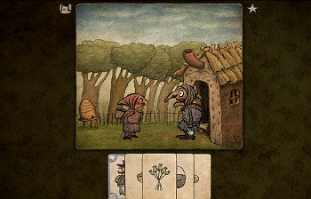 PILGRIMS![]() Uitgever: Amanita Design / 2019 Ontwerper: Amanita Design Platform: PC, Mac, Linux, iPad, iPhone. Systeemeisen: --- Windows 7 SP1 of beter - Processor: 2 GHz Intel i5 of beter - 4 GB RAM - Toegewezen videokaart - 800 MB beschikbare opslagruimte. --- MAC OS Sierra - Processor: 2 GHz Intel i5 of beter - 4 GB RAM - Metal supported videokaart: Intel HD en Iris Graphics van de HD 4000 series of nieuwer of AMD GCN-based GPUs of Nvidia Kepler-based GPUs of nieuwer - 800 MB beschikbare opslagruimte. --- LINUX Ubuntu 16.04+ - Processor: 2.3 GHz Dual Core - 4 GB RAM - 800 MB beschikbare opslagruimte. Categorie: Fantasie, puzzels, reisavonturen, meerdere oplossingen, handgetekende 2D en 2.5D comic-stijl beelden, 3de persoon, point & click. Walkthrough: klik hier voor Yvonnes Nederlandstalige walkthrough. Beschrijving: In een charmant klein koninkrijk, dat gebaseerd is op oude Centraal Europese sprookjes zitten een vijftal vrienden te kaarten om geld. Een van hen heeft ergens zijn tent opgeslagen en gaat het gebied verkennen waar hij zich bevindt. Zo komt hij op verschillende plekken als een kasteel of een berenhol en krijgt hij onder meer te maken met een draak, een beer, een duiveltje en een koning met zijn dochter. Hij ontmoet ook zijn tegenspelers bij het kaartspelletje, die zich een voor een bij hem aansluiten op zijn verkenningstocht. Vanaf dat moment is er ook met die figuurtjes te spelen. ![]() ![]() Pilgrims heeft een mooie, aparte manier van spelbediening. Je sleept zowel de bespeelbare figuurtjes het scherm in, als spullen uit de inventaris. Dat alles in de vorm van speelkaarten. Daarmee legt het een link met het kaartspel, waarmee het spel begint. De puzzels zijn behoorlijk makkelijk, maar ze geven veel plezier om op te lossen. Het zijn allemaal dialoog- en inventarispuzzels. De dialogen moet je zien op te maken uit tekstballonnetjes, waarin geen teksten staan, maar kleine tekeningen. Dat is knap gedaan. Je leest ze na een paar keer alsof het geschreven tekst is. De informatie die je uit de tekstballonnetjes opmaakt, is niet alleen bijzonder, maar ook speels weergegeven. ![]() ![]() Die zelfde speelse vormgeving betreft ook de inventaris. Het is zo enorm grappig om te zien hoe de figuurtjes onnodige spullen teruggooien in de inventaris, er even kunstjes mee doen of dingen uitspugen die ze niet lusten. Ieder figuurtje heeft zijn eigen karakter en gaat anders met de inventaris om dan een ander figuurtje. De een jongleert met zijn spullen, de ander begint eerst een mep uit te delen voordat hij informatie vraagt. De beer kan een bezemsteel fantastisch op zijn neus laten balanceren. Elk figuurtje wil iets uit de verkenningstocht halen. Geld bijvoorbeeld, een ziel voor in de hel, een weggevlogen vogeltje of een huwelijkspartner. Naast de gewone spullen die ze nodig hebben voor het oplossen van de puzzels, hebben ze ook ieder voor zich hun eigen wensen. ![]() ![]() Uiteraard geldt de prachtige en speels, humoristische tekenstijl ook voor de te bespelen figuurtjes. Ze hebben heldere kleuren en worden gedetailleerd weergegeven, net als de achtergrond. Hun bewegingen zijn vloeiend, expressief en heel werkelijkheidsgetrouw, voor zover je daarvan kunt spreken bij stripfiguurtjes. Ze bewegen hun gezicht en dat spreekt boekdelen. Het kleine heksje dat in een ruzie met een boze heks steeds roder en nijdiger wordt. Geweldig getekend. Ook de beer die met een hengel aan het klunzen is, heeft zulke levensechte bewegingen, dat je alleen maar met bewondering over de tekenaars kunt denken. Achtergrondbewegingen zijn er ook. Een rokende krater, een brandend vuurtje met een kookpot waarin iets zit te pruttelen bijvoorbeeld of een waterval of een friemelende worm. ![]() ![]() De figuurtjes spreken, maar niet in een bestaande taal. Ze murmelen er maar wat op los terwijl tóch hun gemoedstoestand duidelijk wordt. Een van de geluiden waarin je een bestaand woord herkent, is "joehoe" van de prinses. Je ziet en hoort hoe blij ze is. De achtergrondmuziek is prima gekozen. In het begin klinkt typische kroegmuziek met accordeon en er is ook een deel met trommelmuziek, vrolijk en ritmisch. De muziek stoort niet en ondersteunt de sfeer in het spel, maar is altijd vrolijk en nooit zwaar. Andere geluiden zijn er uiteraard ook in dit verzorgde adventure te horen. Gesnurk in een tent en gefluit van vogels. Het is niet veel, maar je mist niets: er is zo veel te beleven in dit spel! ![]() ![]() Samengevat is dit charmante adventure een mooi vormgegeven spel met hoge, artistieke waarde en sympathieke figuurtjes in een logische setting. Een minpunt is de kortheid ervan, maar de pluspunten overheersen. Ervaren adventurespelers zullen de speelsheid waarderen en het spel overspelen om andere mogelijkheden te proberen die niet per se tot de oplossing leiden, maar wel veel grappigs laten zien. Beginnende spelers en ook wat oudere kinderen zullen het spel makkelijk uit kunnen spelen, maar ook het plezier ontdekken dat het genre te bieden heeft en de figuurtjes een warm hart toedragen. De makers van onder meer Samorost en Machinarium hebben met dit adventure iets moois op de markt gezet. Grotere plaatjes bekijken? Ga naar de screenshots. Andere spellen van Amanita Design: Botanicula CHUCHEL Creaks Machinarium Samorost 2 Samorost 3 Gratis te spelen: - Osada - Questionaut - Rocketman - Samorost 1 - The Quest for The Rest |
