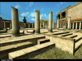 POMPEĎ: The Legend of Vesuvius![]() Uitgever: Cryo Interactive / 2000 Ontwerper: Cryo Interactive Entertainment Platform: PC, Mac. Systeemeisen: --- Windows 95/98 - Pentium 200 MMX processor - 32 MB RAM - 12x CD-ROM drive. Categorie: Historisch, educatief, zoektocht, redding, geïllustreerd realisme, 1ste persoon, point & click. Extra info: In Noord-Amerika uitgegeven onder de titel Timescape: Journey to Pompeii Beschrijving: Adrian Blake, gevangen in een berggrot, omringd door een voortwoedende oorlog, vreest dat zijn opwindende en avontuurlijke leven bijna ten einde is. Dan verschijnt de godin Ishtar voor hem en biedt aan hem te redden in ruil voor zijn liefde. Adrian wijst haar avances af en keert later veilig naar huis terug om daar te ontdekke dat zijn verloofde wordt vermist. Adrian realiseert zich dat Ishtar hem heeft vervloekt en doorzoekt oude geschriftrollen om een manier te vinden waarmee hij de godin kan oproepen om hem te helpen Sophia te vinden. In plaats daarvan daagt Ishtar hem uit om terug te gaan in de geschiedenis, naar Pompeï in het jaar 79 na Christus en de liefde en het vertrouwen van Sophia te winnen, als een volslagen vreemde voor haar. Adrian moet racen tegen de klok - hij is zich ervan bewust dat de Vesuvius voorbestemd is om over vier dagen uit te barsten. Hij moet talloze obstakels overwinnen en snel handelen om Sophia en zichzelf te redden voordat alles verloren is. Slechts vier dagen om Sophia's hart te winnen en haar over te halen met hem de stad te verlaten!