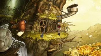 ![]() Om ervoor te zorgen dat je ook kijkt naar al dat moois, zijn er in het spel 'sidequests': extraatjes, die niet noodzakelijk zijn om het spel uit te spelen. Je mag namelijk dauwdruppels en stickers zoeken, die heel klein en onopvallend hier en daar verstopt zijn. Natuurlijk reageren deze dingen niet op de "laat-alle-actieve-punten-zien" toets. Dat zou te makkkelijk zijn. Ook zijn er bonussen te verdienen. Zo leert Jerry bijvoorbeeld kwartetten. En speel je vrijwillig een spelletje kwartetten tegen alle inwoners van Mousewood, dan verdien je zo'n bonus. Als je altijd wint, trouwens ook. Maar vind je dit soort minigames niet leuk, dan zijn er nog ruim voldoende leuke 'verplichte' problemen op te lossen. Het wordt Jerry niet gemakkelijk gemaakt om de gevraagde toverspreuken te vinden. Zijn vindingrijkheid en zijn hulpvaardigheid worden op de proef gesteld. Zoals in elke goede adventure, volgt het ene probleem op het andere. Heb je eindelijk het gereedschap terug, willen de timmerlui het niet gebruiken omdat ze bang zijn dat het weer gestolen wordt! En is die boot eindelijk klaar, dan kun je uiteraard nog niet meteen gaan varen. Om nog maar te zwijgen over de problemen die Jerry tegenkomt als hij mag proberen de portaalbomen te openen. Voor de beginners is er een hintsysteem dat je de goede richting op stuurt, maar gelukkig niet de puzzels voor je oplost. Je kunt samen met Jerry glimlachen van voldoening als iets gelukt is.
