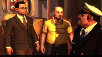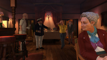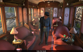 ![]() De prachtige grafische achtergronden onderstrepen de hele sfeer van het spel. Ze zijn gedetailleerd en passend bij de tijd waarin het verhaal zich afspeelt. Door een uitstekend gebruik van licht schaduwen wordt een effect van diepte en ruimte gecreëerd. Een perron met glazen koepels die het licht spreiden, het spaarzaam verlichte ruim in een schip, de zon die door treincoupe's valt, het geeft een perfecte sfeer. Karakters die ook bewegen als je niet met ze bezig bent, en het feit dat er geen naamplaatjes verschijnen als je met je cursor over het scherm gaat, past dan ook heel goed bij het gevoel mee te spelen in een film. Al kun je tegen inlevering van verdiende punten wel even een hotspotindicator aanzetten, mocht je dat willen. Het is jammer dat in close-up de gezichten wat onnatuurlijk lijken, maar verder is er niets aan te merken op de kwaliteit van de beelden. De aangename en sfeerbepalende achtergrondmuziek in combinatie met de geluidseffecten, verdienen dan nog een extra compliment.