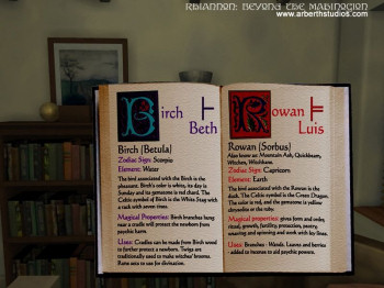 ![]() De meeste puzzels in Rhiannon zijn gebaseerd op je inventaris, dus op het vinden en gebruiken van voorwerpen. En dat zijn er écht heel veel, ruim 200! Dus eigenlijk is het maar goed dat je niet meteen alles kunt meenemen wat je ziet. Het gebruik van al die voorwerpen is volledig logisch, ook als er magie in het spel is. Als je een blikje kattenvoer vindt, is dat gewoon om het voerbakje van de kat mee te vullen. Je hoeft niet naar een of ander obscuur ander doel te zoeken. Naast de inventarispuzzels zijn er ook hele leuke andere puzzels, zoals het ontcijferen van het oude Keltische Ogam-schrifttekens.