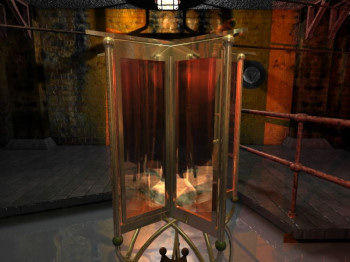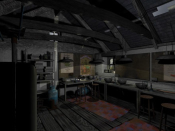 ![]() De statische beelden worden levendiger gemaakt door animaties, zoals stromende water als je een kraan open draait, maar bomen of struiken zie je niet bewegen in de wind. Toch weet Rhiannon wel het juiste horrorsfeertje op te roepen met mist over het water, een beslagen spiegel waar woorden op verschijnen of gedoseerde animaties van vreemde verschijnselen. De geluidseffecten zijn minimaal, maar precies zoals ze behoren te zijn: deuren hoor je open en dicht gaan, water stroomt en magie knispert. Je hoort geen voetstappen van jezelf. Het totale gebrek aan andere personen om mee te praten en een kat die je nooit ziet, maar wel af en toe een muis in de keuken achterlaat, geeft een akelig je staat er alleen voorgevoel. Het achtergrondgeluid is uitstekend en benadrukt je eenzaamheid en de vervloeking op Ty Pryderi.