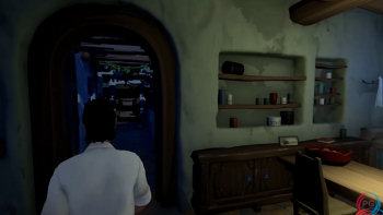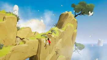 ![]() Dat rondkijken is al een genot op zichzelf, overdag, maar ook 's nachts, want de tijd verstrijkt terwijl je rondloopt. De stralend blauwe lucht wordt ongemerkt donkerder, tot je de zon oranjerood in zee ziet zakken. En in het duister zie je weer heel andere dingen dan in daglicht, dus maak er gebruik van en kijk om je heen. Alle omgevingen zijn prachtig vormgegeven, of het nu het groene eiland, een zandwoestenij, duistere grotten met robots en geesten, of vervallen witte ruïnes zijn. Het geheel is niet fotorealistisch, daarvoor zit er te weinig structuur op de rotsen en gras en dergelijke en zijn de kleuren te pastel. Toch is het getekende geheel heel aangenaam gedetailleerd op een manier die bijdraagt aan het magische surrealistische gevoel van dit eiland. Rafels aan de kleding van de jongen, gezichtsuitdrukkingen en houdingen van alle levende wezens, "vogelpoep" aan de randen van rotsen of klimopranken, zodat je weet waar je je kunt vastgrijpen, lichteffecten en schaduwen. Voeg daarbij de vele kleine animaties zoals wuivend gras, bewegend water, vogels, krabben en kleine beesten die je voor de voeten lopen en het geheel houdt meteen vanaf het begin je aandacht vast en nodigt uit tot onderzoeken en bekijken.