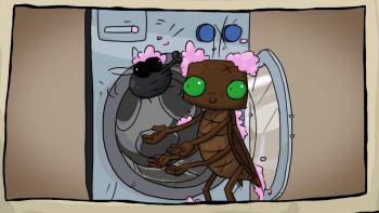 ![]() Gelukkig heeft een kakkerlak de mogelijkheid om over wanden en plafonds te kruipen en daar maakt dit spel volop gebruik van bij het oplossen van de puzzels. Dit lopen doe je met behulp van je toetsenbord en het gebruiken van voorwerpen door erop te klikken. De meeste puzzels zijn met een beetje logisch nadenken goed op te lossen. En je kunt zelfs uitzoomen om het geheel overzichtelijker te maken, zodat je voorwerpen makkelijker vindt. Als je naar een zijwand of plafond wandelt, kantelt je beeld en zie je de wereld meteen vanuit het andere perspectief en dat zijn vaak totaal verschillende werelden. Een betonnen vloer met mieren is kil en grimmig. Het plafond in dezelfde ruimte is juist weer warm en hartelijk. roach/roach10 De handgetekende achtergronden zien er prima uit en zijn zeer gedetailleerd. Het is dan ook een beetje jammer dat de tussenscènes er wat bekaaider afkomen. Maar deze animaties zorgen er wel voor dat de vrolijke sfeer intact blijft en dat is ook wat waard.