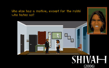 THE SHIVAH (+ Kosher Edition)![]() Uitgever: Wadjet Eye Games / 2006, 2013 Ontwerper: Dave Gilbert, Wadjet Eye Games Platform: Windows / Mac, Linux, iOs, Android. Systeemeisen: --- Windows 2000 of hoger - Processor Pentium of hoger - 64 MB RAM - 256 kleuren, 266 Mhz of hoger videokaart - 150 MB HD ruimte - DirectX-compatible geluidskaart. --- MAC OS X 10.9.0 of later (macOS 10.13 High Sierra niet ondersteund)- NVIDIA of ATI videokaart vereist. --- LINUX Ubuntu 14.04/Linux Mint 17 - Processor: 1 GHz - 256 MB RAM - Videokaart met 64 MB VRAM. Extra info: In 2013 is er een 'Kosher Edition' van het spel uitgegeven. Hierin zijn de grafische beelden verbeterd en zijn 'steam-achievements' toegevoegd. In 2014 verschenen ook Mac, Linux en Android versies. Categorie: Detective, moord, psychologisch, rabbi, meerdere eindes, getekend 2D en 2.5D realistisch beeld, 3de persoon, point & click. Walkthrough: klik hier voor Marjo's Nederlandstalige walkthrough. Beschrijving en review: Rabbi Stone raakt in een geloofscrisis als hij merkt dat nog maar weinig mensen zijn synagoge bezoeken. Ook kan het gebouw wel een opknapbeurt gebruiken. Dan lijken zijn zorgen voorbij te zijn, als hij 10.000 dollar erft. Probleem is alleen, dat de overledene vermoord is en de politie de rabbi ziet als verdachte. Stone gaat zelf op onderzoek uit, want hij wil wel weten waarom iemand, die hij acht jaar geleden de synagoge uitgooide, hem nu zoveel geld nalaat. Als eerste brengt hij een Shivah-bezoek - een condoleance bezoek in de zevendaagse rouwperiode - aan de weduwe. Ook zij heeft zo haar vragen.