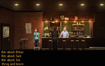 ![]() De grafische beelden doen in de 2006-versie ietwat verouderd en pixelig aan. Ook in de 2013-versie, met sterk opgepoetste beelden, blijft het spel een 'retro look' houden. Dit is overigens geen enkel probleem voor het speelplezier en inmiddels zelfs een handelsmerk van de spellen van Dave Gilbert. Wat wel opviel is het feit dat de ruimtes een 3D-look krijgen door ze in de verte kleiner te laten worden, maar dat de karakters die rondlopen overal even groot zijn. Dit geeft vervolgens een totaal vertekend perspectief. Het spel is niet zo groot en er zijn dan ook weinig locaties te bezoeken. In de deluxe versie zijn pop-up schermpjes toegevoegd voor de pratende personen. De bediening van het spel is eenvoudig. Linksklik om een actie te ondernemen en rechtsklik om iets te bekijken. Het stem-acteren is goed uitgevoerd en klinkt heel natuurlijk. Er is geen sprake van lipsynchronisatie. In de bovenhoeken verschijnt een portretje van degene die aan het woord is. De achtergrondmuziek is een aangenaam, onopvallend jazzy deuntje.