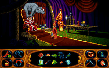 SIMON THE SORCERER 2: The Lion, the Wizard and the Wardrobe![]() Uitgever: Adventuresoft Ltd. / 1995 Ontwerper: Adventuresoft Ltd. Platform: PC, Mac, Amiga, Android, iPad, iPhone. Systeemeisen: --- MS-DOS 4.0 tot 6.22 en Windows 95 - Processor: Intel i386 - 4 MB RAM - VGA videokaart - Soundblaster geluidskaart - 2x CD-ROM drive. --- MAC OS 8.0 - Processor: Power PC 603 - 32 MB RAM - 4x CD-ROM drive. Categorie: Fantasie, tovenaar, kleerkast zoeken, humor, 2D en 2.5D cartoonbeelden, 3de persoon, point & click. Beschrijving: Net als hij denkt dat alles normaal zijn gangetje kan gaan, wordt het leven van Simon weer helemaal ondersteboven gegooid. De geest van de kwaadaardige magiër Sordid is namelijk terug levend geworden nadat de vader van de jonge Runt een toverboek vernietigt. Hij is nu een soort robot en Sordid heeft maar één gedachte in zijn hoofd: hij wil wraak op Simon nemen. Sordid is bereid de jonge Runt op te leiden tot tovenaar, op voorwaarde dat Runt hem helpt met de wraakactie op Simon. Sordid bouwt opnieuw zijn 'Fortress of Doom' en stuurt een magische kleerkast naar Simon om hem te ontvoeren. Wanneer Simon in de kleerkast stapt, zou hij in het fort van Sordid moeten belanden. Simon belandt echter in het huis van Calypso, de magiër die Simon in deel 1 gered heeft! Het wordt nu Simons taak om een speciale brandstof te vinden, waarmee hij de kleerkast weer terug naar huis kan laten gaan én natuurlijk Sordid weer onschadelijk te maken. ![]() ![]() Grotere plaatjes bekijken? Ga naar de screenshots. Andere avonturen van Simon the Sorcerer: Simon the Sorcerer Simon the Sorcerer 3 D Simon the Sorcerer 4: Chaos Happens Simon the Sorcerer 5: Who'd Even Want Contact |