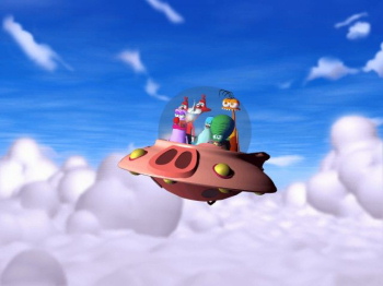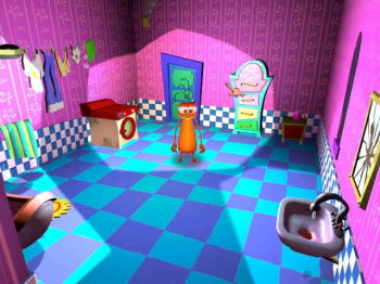 STUPID INVADERS![]() Uitgever: Ubisoft Entertainment / 2000 Ontwerper: Xilam Animation Platform: PC, Mac, Dreamcast. Systeemeisen: --- Windows 95/98 - Pentium II MMX 350 MHz processor - 64 MB RAM - 24x CD-ROM drive - 16-bit DirectX 7 compatible geluids- en videokaart - 250 MB vrije opslagruimte (3 GB aanbevolen). Categorie: Science fiction, 5 aliens helpen, humor, ontsnappen van aarde, 2D of 2.5D cartoonbeelden, 3de persoon, point & click. Beschrijving: Stupid Invaders is gebaseerd op de Franse en Duitse tv-animatieserie Space Goofs (ook bekend als Home to Rent). Vijf aliens - Candy, Etno, Gorgious, Stereo en Bud - storten na een doldwaze vlucht door de ruimte, op onze mooie aarde neer. Ze verstoppen zich in een verlaten huis terwijl ze hun ruimteschip repareren. Ondertussen heeft Dr. Sakarin, een kwaadaardige wetenschapper die buitenaardse wezens verzamelt, ze ontdekt en stuurt zijn kwaadaardige handlanger Bolok erop uit om ze te vangen. Help de vreemdelingen beurtelings met het bedenken van oplossingen van de problemen die ze in een voor hen vreemde en woest wereld tegen komen. Bewapen ze met badkamerproducten, gebruikte onderkleding en koeienmest om ze weer thuis te krijgen.