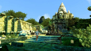 ![]() Grafisch ziet het spel er schitterend uit. Zowel de kamer in het onderzoeksstation, als de locaties buiten op het strand en bij de tempel, zien er realistisch en gedetailleerd uit. Ook zijn er voldoende achtergrondanimaties zoals bewegende wolken en bomen, vliegende vogels en stromend water, die het geheel een levendige indruk geven. Fargo loopt soepel, hoewel het navigeren niet eenvoudig is, dankzij onverwacht draaiende camerastandpunten. Opgeraapte voorwerpen kunnen in close-up bekeken worden. Sommige ruimtes zijn groter dan je scherm en daar kun je met je muis slepen. Het is allemaal goed uitgewerkt. Toch gebruikt het spel niet veel videogeheugen, zodat ook mensen met een iets oudere computer kunnen genieten. De resolutie is apart in te stellen. De muziek is niet onaangenaam en klinkt nogal etherisch. Hij valt regelmatig in herhaling, maar dat is niet echt storend. Het stemacteren is eveneens niet slecht gedaan.