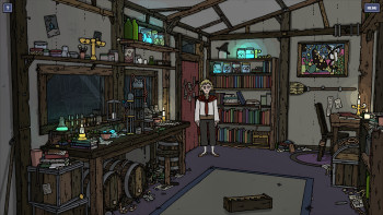 ![]() Dit spel kent 3 tekenstijlen. Aan het begin en aan het einde zijn het een soort silhouet tekeningen: witte tekeningen op een zwarte achtergrond. Het eigenlijke spel is getekend in een kleurige, zeer gedetailleerde, comicstijl. De achtergrondtekeningen zijn nogal statisch. Geen wind die takken beweegt en dat soort zaken, wel verschijnt er af en toe een kabouter die weer weg is als je ernaar wilt kijken en ook een magiër komt pas tevoorschijn als je iets bekijkt in zijn huis. Een destilleerapparaat laat borrelende flesjes zien en af en toe valt er een vochtdruppel in de onderaardse grot of zie je dampen opstijgen. Alle voorwerpen, en dat zijn er veel, zijn goed te zien en er is ook nog de hotspotfunctie om voorwerpen in de vuilnisbelt te ontdekken. Verder komen er 9 bijna beeldvullende close-ups voorbij van zowel personen als objecten.