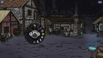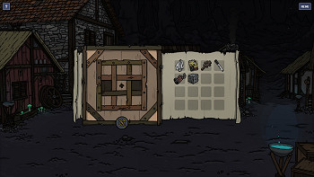 ![]() Enkele figuurtjes hebben duidelijke karakters. De grafdelver Croc is een nerveus, veel bewegend figuurtje. Dat past bij zijn wat angstige ontzag voor regeltjes en zijn wil zich daaraan te houden. Als de figuurtjes praten, bewegen hun mondjes en de mimiek is goed weergegeven. Het oppakken van voorwerpen echter, is meer een suggestie van oppakken, een armbeweging. De voorwerpen komen dan niet in de hand terecht. Alleen Clodomir loopt, de anderen zitten of staan. De manier waarop hij loopt, komt natuurlijk over. De puzzels zijn voornamelijk inventaris- en dialoogpuzzels en er is een doolhof. Je moet veel objecten zien te vinden en ze combineren op een werkbank. Of er recepten mee namaken. Er zijn veel voorwerpen te zien zonder dat ze opgepakt kunnen worden. In het spel zelf kun je de inventaris bekijken door op de hoofdpersoon Clodomir te klikken. Voorwerpen uit de inventaris zijn niet met elkaar te combineren. Een werkbank in het dorp en een destillatieapparaat bij een magiër maken het combineren van voorwerpen mogelijk, zodat alleen daar nieuwe voorwerpen ontstaan.