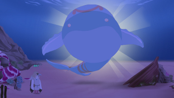 ![]() De karaktertjes zijn 'plat', je herkent ze voornamelijk aan hun uiterlijk, niet aan bijbehorende karaktertrekjes. Suli zelf voelt zich verantwoordelijk voor het lot van zijn medebewoners en de zeebewoners, wat voornamelijk blijkt uit zijn daden tijdens de zoektocht naar harmonie. Het traditionele verhaal lijkt simpel, er zijn geen vernieuwende aspecten en de humor komt er bekaaid vanaf in tekst en situaties, al zijn er wel enkele komische karaktertjes te zien. Maar het geheel zit op een prettige manier logisch in elkaar en er zijn geen losse eindjes. Het verhaal zou zó afgesloten kunnen worden met 'en ze leefden nog lang en gelukkig', maar niet voordat Suli de nodige problemen heeft opgelost. Er is een hintfunctie in het spel, maar die is niet erg specifiek, dus zul je zélf een oplossing moeten vinden.