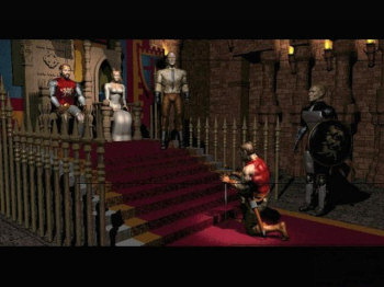 CHRONICLES OF THE SWORD![]() Uitgever: Psygnosis / 1996 Ontwerper: Synthetic Dimensions Platform: DOS, Playstation Systeemeisen: --- MS-DOS 5.0 - Intel 1486 DX2 processor - 4 MB RAM - SuperVGA videokaart - Soundblaster AWE32 geluidskaart - 2x CD-ROM drive. Categorie: Historische fantasie, Engeland, Camelot, actie-scènes, 2D en 2.5D geïllustreerd realisme, 3de persoon, point & click. Beschrijving: In het koninkrijk van Arthur en de ridders van de ronde tafel, krijgt ridder Gawain krijgt de taak om het koninkrijk te bevrijden van de kwaadaardige heks Morgana. Het spel bevat ook enkele simpele vechtscènes, die je zelf kunt doen (regular setting), of door de computer (automated setting) kunt laten opknappen.