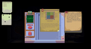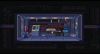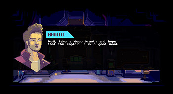 ![]() Grafisch heeft het spel een retrolook over zich die doet denken aan de adventures uit de jaren negentig van de vorige eeuw. De ouderwetse apparatuur in het ruimteschip - geen touchscreens te bekennen - geeft een leuke nostalgische sfeer aan deze science fiction uit de toekomst. Het geheel is in paarsblauwe tinten gehouden met wat geeloranje effecten en natuurlijk ouderwets groene computerschermpjes, waarop je zelfs het antieke "pong" kunt/moet spelen. Alles is ruim voldoende gedetailleerd. Voorwerpen kun je met je cursor uit doosjes halen en ergens ander in je scherm plaatsen, pagina's kun je ombladeren en ook de loopanimaties gaan vloeiend. Er zijn geen gesproken teksten in het spel. Als Ramto of Ann een opmerking plaatsen, verschijnt een popupschermpje met een afbeelding van de spreker en een tekstballon. De achtergrondmuziek is rustig en nergens overheersend. Hij past prima bij de science fiction sfeer.