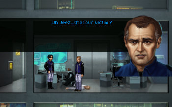 ![]() Grafisch is het spel precies wat het beloofd: retro van het betere soort. Dat betekent dat je hier en daar wel wat aan zogenaamd 'pixelhunting' mag doen om een bepaald voorwerp te vinden. Het hoort bij de charme van een indie-spel en zorgt ervoor dat je aandachtig de zeer vele, verder prima vormgegeven achtergronden zorgvuldig bekijkt. De stad in al zijn aspecten is heel overtuigend neergezet. Van de steriele kantoren in het CEL-hoofdkwartier, tot de slonzige, verwaarloosde ruimtes waar de verslaafden zich ophouden, het overtuigt in zijn echtheid. De animaties van de karakters zijn vloeiend en achtergronden blijven levendig door bijvoorbeeld geanimeerde reclameborden of robotjes.