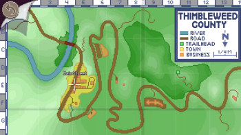 THIMBLEWEED PARK![]() Uitgever: Terrible Toybox / 2017 Ontwerper: Ron Gilbert & Gary Winnick / Terrible Toybox Platform: PC, Mac, Linux, Android, iPad, iPhone, XBox One, Nintendo Switch. Systeemeisen: --- Windows 7/8/10 - Processor: 2 GHz - 4 GB RAM - Grafische kaart: Intel HD 3000 of beter - DirectX 11 - 1 GB beschikbare HD ruimte. --- MAC OS X 10.9.0 en later. --- LINUX Ubuntu 14.04/16.04 en later. Categorie: Humoristisch mysterie, moordonderzoek, klassieke 2D beelden, vijf speelbare karakters, casual en hard mode, 3de persoon, point & click. Walkthrough casual mode: klik hier voor Yvonnes Nederlandstalige Walkthrough. Walkthrough hard mode: klik hier voor Yvonnes Nederlandstalige Walkthrough. Beschrijving en review: Thimbleweed was vroeger een bloeiende stad dankzij een kussenfabriek en eigenaar/uitvinder Chuck Edmund. Een modern stadje ook, voorzien van moderne technologie. Nadat de fabriek in vlammen opging is Thimbleweed vervallen tot een stipje op de kaart met slechts 80 inwoners en veel dichtgetimmerde panden. Op een dag wordt in het moeras een onbekende en vermoorde man gevonden. Agenten Ray en Reyes worden op de zaak gezet en ontdekken al snel dat de moord iets te maken heeft met de oude gebeurtenissen in de stad en de moordenaar dus ook hier gezocht moet worden. Niet eenvoudig, want de bizarre inwoners blijken veel te verbergen te hebben. En ook de doden lijken in de stad een woordje mee te spreken. Maar ook de agenten hebben zo hun eigen verborgen agenda. Complicaties overal.