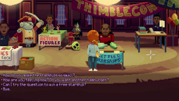 ![]() Samengevat heeft Thimbleweed Park precies dat wat een goede adventure moet hebben. Een goed uitgewerkt verhaal met gevarieerde puzzels en problemen die een voldaan gevoel geven als je ze op eigen houtje oplost. Overtuigend gedetailleerde beelden en vriendelijke humor in beeld en dialogen, omlijst met sfeerbepalende muziek. Een heerlijk lang spel en een aanrader voor oude fans en nieuwkomers. Grotere plaatjes bekijken? Ga naar de screenshots. Een gratis spel met Delores in de hoofdrol: Delores: A Thimbleweed Park Mini-Adventure |