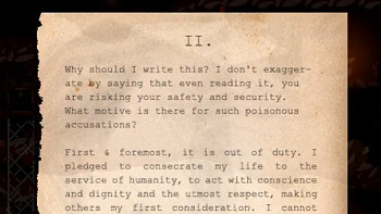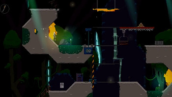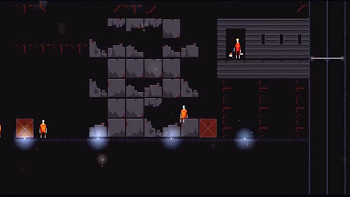 ![]() Het spel is uitgevoerd in retro-pixel beelden, wat zeer effectief blijkt te passen bij het onderwerp. Donkere kleuren, een enkel lichtpunt en weinig details in de gangen geven je meteen een beklemd en hopeloos gevoel. Ook later in het spel, als je in een soort magazijn tussen eindeloze metalen hekken en wanden loopt die iets helderder zijn, of in een spaarzaam verlichte kantoorruimte met computers werkt het gebrek aan licht en detail deprimerend. Een hele duidelijk plattegrond die je in close-up ziet, kan je dan zomaar ineens hoop geven dat je hier ooit uitkomt. Achtergrond informatie over Ezra's leven, krijg je gedoseerd aangeleverd in korte animaties en in teksten die gedachtes van hem of anderen zijn. Het houdt prima je aandacht en interesse vast. Wat ook wel nodig is, want de puzzels zijn min of meer repetatief, het blijft een verplaatsen van keien of blokken. De verdere animaties zoals het lopen en bukken van Ezra en het rollen en schuiven verloopt soepel en effectief. Er zijn geen gesproken stemmen in het spel. De achtergrondmuziek past perfect bij de sfeer van het spel. Een continue donkere brommende toon met enkele heldere klanken in mineur, waar een sprankje hoop doorheen klinkt. Mooi gedaan.