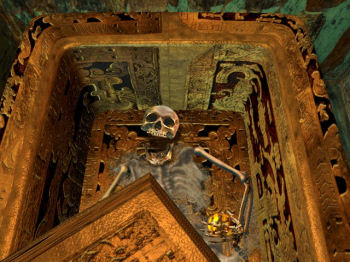 TIMELAPS: Ancient Civilizations...the Link to Atlantis![]() Uitgever: GTE Entertainment / 1996 Ontwerper: GTE Entertainment Platform: PC, Mac. Systeemeisen: --- Windows 3.1/95 - Pentium 60 MHz processor (100 MHz aanbevolen) - 16 MB RAM - SVGA compatible videokaart - 4x CD-ROM drive - 90 MB opslagruimte. Categorie: Fantasie, science fiction, zoektocht in verleden, geïllustreerd realisme, 1ste persoon, point & click. Walkthrough: klik hier voor Hans' Nederlandstalige walkthrough. Beschrijving en review door Hans: Inleiding Na het immense succes sinds 1993 van het spel Myst, dat een enorme opzwieper was voor het genre avonturenspellen, volgden al gauw andere adventurespellen volgens hetzelfde principe van point & click, waarmee je van diabeeld naar diabeeld springt en via aanraakgevoelige delen van het scherm in interactie kunt treden met de afgebeelde omgeving. In 1996 kwam Timelapse uit, een gouwe ouwe die nog steeds zeer de moeite van het spelen waard is en het verdient om in opgeknapte vorm opnieuw te worden uitgebracht. Dat is tot op heden niet gebeurd maar gelukkig heeft Steam het oude spel wel geschikt gemaakt voor moderne Windows-systemen zoals Windows 10. ![]() ![]() Verhaal Het begint ermee dat je een dringend bericht ontvangt van een bevriende archeoloog die op de Paaseilanden werkt aan een oude link naar verloren beschavingen. Als je aankomt op zijn opgravingsplek, ontdek je dat professor Nichols vermist is. Jij bent de enige persoon die hem kan vinden en gewapend met het achtergebleven dagboek van Nichols, ga je op een avontuurlijke reis die je naar plaatsen - en tijden - brengt waar je niet eens van hebt gedroomd. Je zoektocht zal je uiteindelijk leiden naar de oude Egyptenaren, Maya's, Anasazi en de verloren stad Atlantis! In het voetspoor van je vriend, de verdwenen professor Nichols, reis je via een tijdmachine naar het verleden van oude beschavingen. Je kunt je eigen volgorde bepalen waarin je die oude werelden wilt bezoeken, maar uit het dagboek blijkt dat Nichols eerst Egypte heeft bezocht, dan de Maya's, daarna de Anasazi en tenslotte Atlantis. Je vriend probeert een verband te leggen tussen de oude culturen en aan te tonen dat die haar oorsprong in Atlantis hebben. Op elk van die plaatsen kun je een deel lezen van het dagboek van de professor, dat je aan het begin van het spel eerst moet zien te vinden. Niet alleen krijg je zo achtergronden over de culturen, maar ook ontvouwt zich het onderliggende verhaal en krijg je soms belangrijke aanwijzingen, zoals een plattegrond of hints om een puzzel op te lossen. ![]() ![]() Spel Op het Paaseiland waar je begint kom je na het oplossen van puzzels bij een tijdmachine terecht. Daar maakt Nichols via een opgenomen video duidelijk dat je drie zogenaamde gene pods moet verzamelen. Dat zijn artefacten waarin de genetische informatie van de oude beschavingen (dna van de bewoners) is opgeslagen. Hij wil deze houders mee terugnemen naar het heden om zijn collega's, die niet in zijn theorieën geloven, te overtuigen van zijn gelijk over de beïnvloeding van de culturen door Atlantis. In Egypte moet je eerst een aanlegplaats voor een boot ontsluiten voordat je naar de overkant van de Nijl kunt varen. Daar is een Nijltempel met interessante puzzels en erachter een rotstempel met weer andere uitdagingen. Zo wordt de volgorde van spelen min of meer bepaald. Bij de Maya's zijn er zes tempels. De eerste dient als vertrekpunt waar je door het oplossen van puzzels toegang moet zien te krijgen tot vier volgende tempels. In elk van deze los je nieuwe puzzels op, wat je steeds een kunstvoorwerp oplevert. Dankzij die vier voorwerpen kun je uiteindelijk de zesde tempel betreden. Bij de Anasazi kun je naar vier windstreken lopen en maakt het niet uit welke je het eerst kiest. Je moet goed opletten wat je ziet en hoort want daar wordt later aan gerefereerd. Je komt nergens ook maar een levende ziel tegen, afgezien dat er af en toe een robotachtige wachter als een hologram verschijnt, bedreigingen uit en weer verdwijnt. Daarnaast kun je meer hologrammen oproepen waarin je door vertegenwoordigers van de beschavingen wordt toegesproken. Uit de dagboekdelen van Nichols blijkt dat hij zich zeer over de afwezigheid van echte mensen verwondert. ![]() ![]() Spelbediening Je gebruikt de muis om acties uit te voeren en om vooruit en achteruit te gaan en naar links, rechts en achterom te kijken. Je kunt echter ook met de pijltjestoetsen rechtsonder op je toetsenbord maneuvreren. Het voordeel hiervan is dat je aan de vorm van de cursor ziet in welke richtingen je kunt gaan. Met de spatiebalk roep je het menu op. Je kunt je vorderingen zo vaak opslaan als je wilt. Bijzonder is dat je behalve het afzonderlijk instellen van het omgevingsgeluid en de muziek ook de lichtsterkte trapsgewijs kunt regelen. Er is geen inventaris die je met allerlei voorwerpen vult. Maar regelmatig kun je één voorwerp oppakken, dat dan rechtsonder in beeld blijft staan totdat je het kort daarna gebruikt. Het oorspronkelijke spel kende ook het beperkte gebruik van een camera maar dat werkt niet onder Windows 10. Toch is het mogelijk om belangrijke informatie vast te leggen door middel van schermafbeeldingen, in mijn geval niet met de bij Steam gebruikelijke F12-toets maar gewoon met Printscreen. En door tijdens het spelen op de Windowstoets te drukken kun je die schermafdrukken raadplegen. ![]() ![]() Puzzels Er zijn allerlei soorten puzzels in het spel. Voor sommige heb je een voorwerp nodig dat je kortstondig meeneemt. Ook zijn er ingewikkelder puzzels waarbij je eerst moet uitzoeken wat de bedoeling is voordat je kunt achterhalen hoe je dat doel bereikt. Er zijn minispelletjes, logische puzzels en uitprobeerpuzzels. De puzzel met de dubbele trappenpiramide bij de Maya's is zo moeilijk dat het geen schande is als je uiteindelijk hulp inroept. En voor wie een beperking heeft biedt een goede speldoorloop ook voor kleurgerelateerde puzzels en geluidspuzzels een uitkomst. De slangenpuzzel